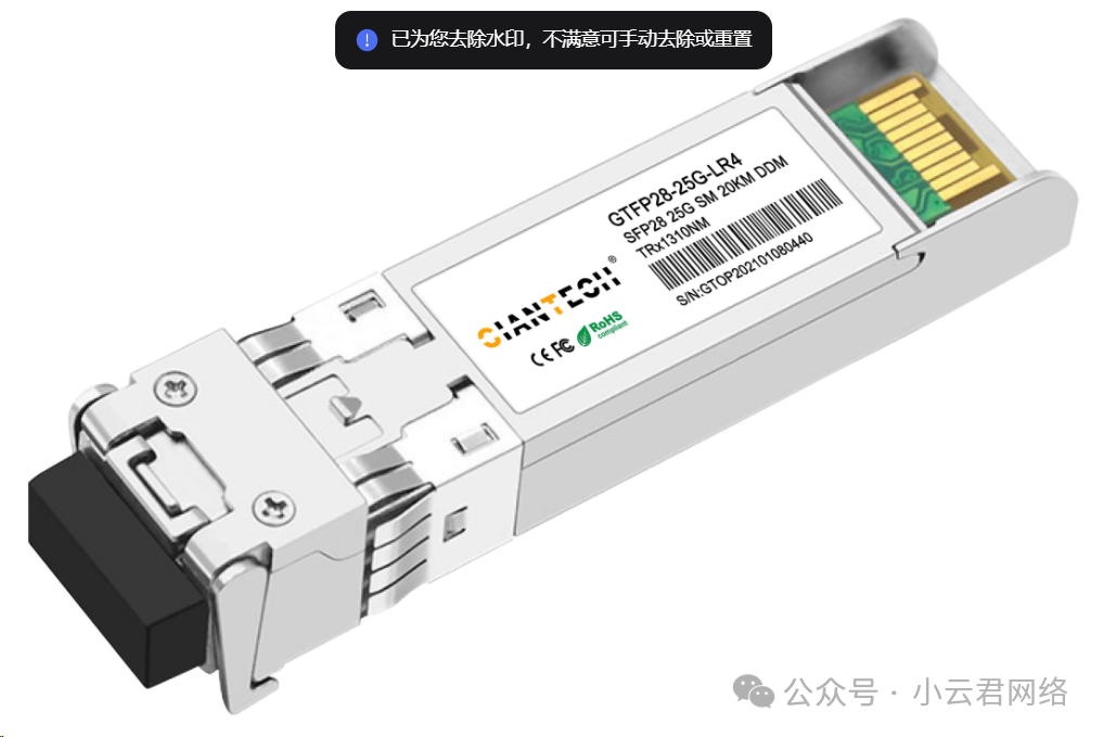 定义:Small Form factor Pluggable 28,是一种基于25Gbps以太网标准的小型可插拔光模块。特点:它能够提供25Gbps的数据传输速率,满足了日益增长的高速网络需求,如数据中心内部的服务器互联、高速存储网络等场景。SFP28在物理尺寸和电气接口上与SFP、SFP+保持兼容,便于在现有网络设备中进行升级和替换。